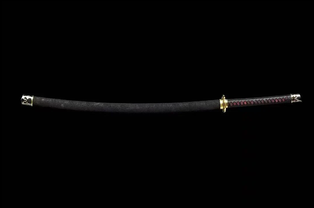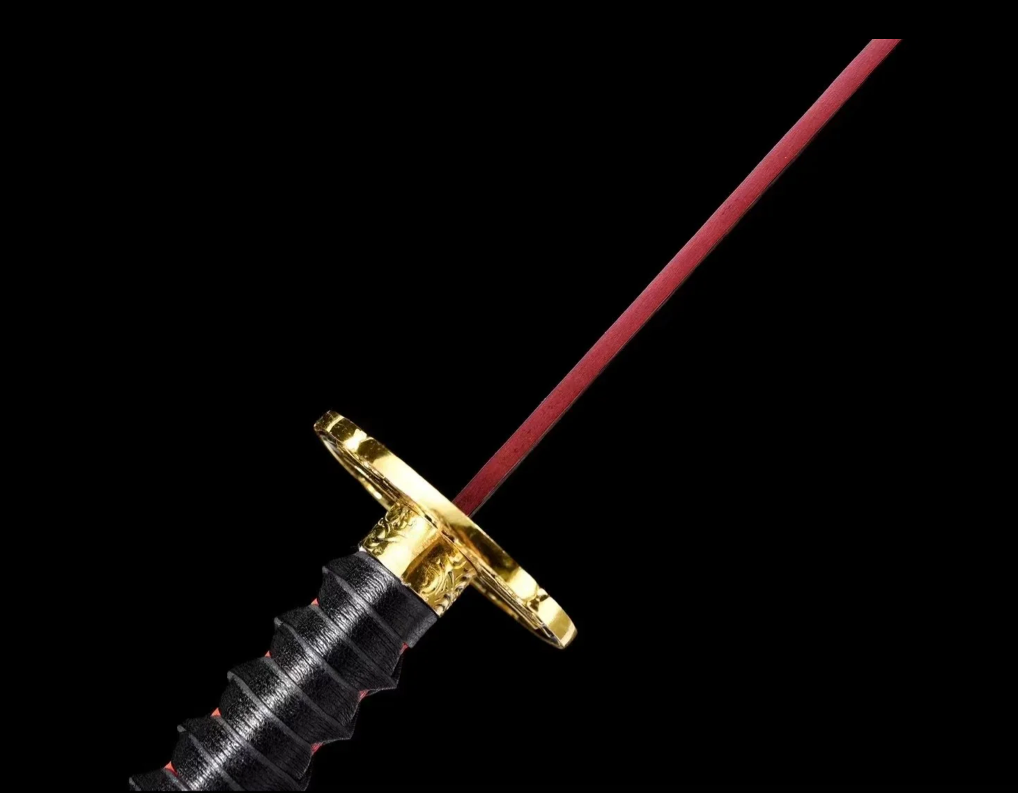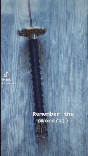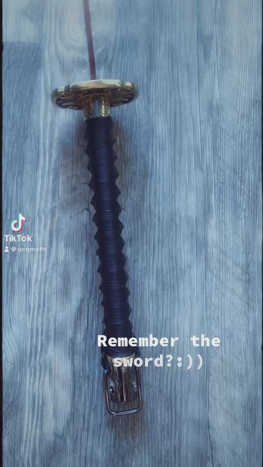 The "Elden" sword is a masterpiece of craftsmanship. It is 117 cm in total length and 82 cm in blade length. The handle is 31 cm long and the blade width is 3.2 cm. The blade thickness is 0.5 cm and the total weight of the sword with the scabbard is 1.4 kg. The hardness is 60. The material is high manganese steel, with alloy fittings. The workmanship is exquisite and it is made by hand. The scabbard material is solid wood wrapped with leather.
